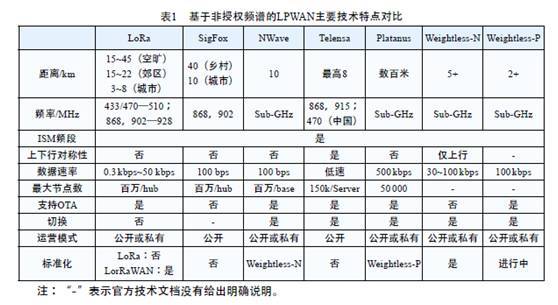 非授權(quán)LPWAN技術(shù)對(duì)比