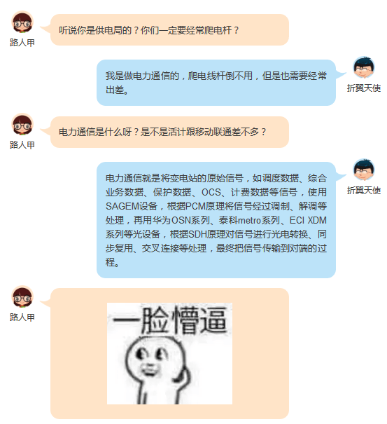 在電力通信中,傳輸?shù)臉I(yè)務(wù)可以分為兩類,一類是生產(chǎn)實(shí)時(shí)業(yè)務(wù),一類是非生產(chǎn)實(shí)時(shí)業(yè)務(wù)。用一句話來說就是:這個(gè)生產(chǎn)業(yè)務(wù)緊急不緊急,需不需要實(shí)時(shí)傳輸。那什么叫實(shí)時(shí)傳輸呢?比如說:直播就是實(shí)時(shí)傳輸,錄播就是非實(shí)時(shí)傳輸。在電力通信中,主要的生產(chǎn)實(shí)時(shí)業(yè)務(wù)有:調(diào)度數(shù)據(jù)、計(jì)費(fèi)數(shù)據(jù)等,主要的非生產(chǎn)實(shí)時(shí)業(yè)務(wù)有:綜合數(shù)據(jù)網(wǎng)(如OA辦公系統(tǒng))等。變電站的主控室內(nèi)有很多采集信息的裝置,如保護(hù)接口裝置采集保護(hù)信息,這些裝置采集到變電站某一個(gè)業(yè)務(wù)的具體數(shù)據(jù)后,就通過通信專業(yè)提供的通道,從這個(gè)變電站傳輸?shù)降卣{(diào)進(jìn)行匯總、分析。打個(gè)比方,通信就像是快遞公司,變電站的某一個(gè)業(yè)務(wù)的具體信息就像是具體的一個(gè)快遞,通信人員把他們貼上目的地址的標(biāo)簽,然后裝箱、上車、走高速,如果是重要的業(yè)務(wù),也許還會(huì)“走鐵路”、“坐飛機(jī)”——使用光信號(hào)傳輸。