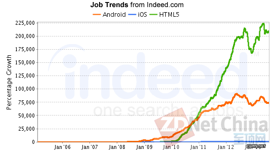 企業(yè)顯然愿意支付更多的薪水來留住人才,讓他們幫助弄清數(shù)據(jù)的價(jià)值。他們同樣也愿意給Apple相關(guān)開發(fā)者開更多的薪水:在Dice的調(diào)查中,Omnigraffle與Objective-C都出現(xiàn)在排行的Top 10。而從Indeed.com的最熱趨勢(shì)分析中,我們能看出一些更有意思的東西:除下大數(shù)據(jù)之外的熱門技術(shù),5個(gè)移動(dòng)技能也位列Top 10——HTML5、iOS、Android、mobile app、jQuery,其中只有一個(gè)與Apple相關(guān)。