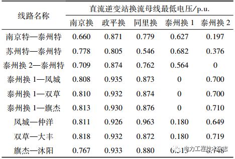 表1 南京換流站附近交流線路故障后換流母線電壓