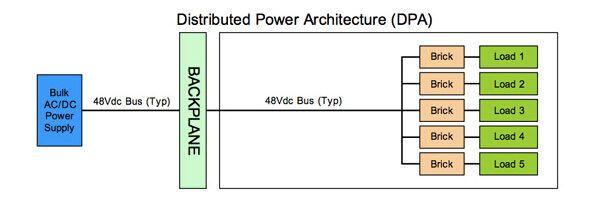 20世紀(jì)90年代開(kāi)始,市面上開(kāi)始大量的采用DPA架構(gòu),前端采用AC/DC電源取代早期簡(jiǎn)易的整流來(lái)獲得48V電壓,隨后通過(guò)隔離的DC/DC電源轉(zhuǎn)成各個(gè)電子功能模塊需要的電壓,有效的提高了效率。