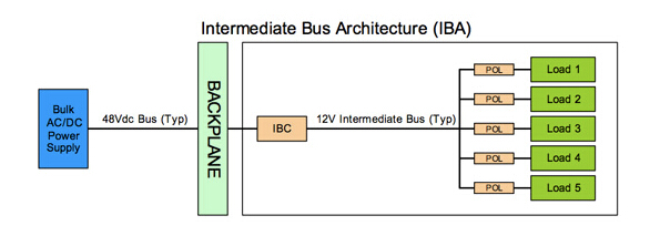 21世紀(jì)初,隨著數(shù)字和模擬芯片趨向于更低的電壓來(lái)更進(jìn)一步地減小功耗以及低成本POL的驅(qū)使,市場(chǎng)逐漸開(kāi)始采用IBA架構(gòu)。基于IBA架構(gòu)的電源系統(tǒng)前端采用AC/DC來(lái)獲得較低的直流電壓,典型的有48V/24V/12V等;接著通過(guò)隔離的DC/DC電源轉(zhuǎn)成更低的中間總線電壓,典型的有5-12V,最后通過(guò)POL轉(zhuǎn)成高質(zhì)量的低電壓供給各種數(shù)字和模擬電子功能模塊。