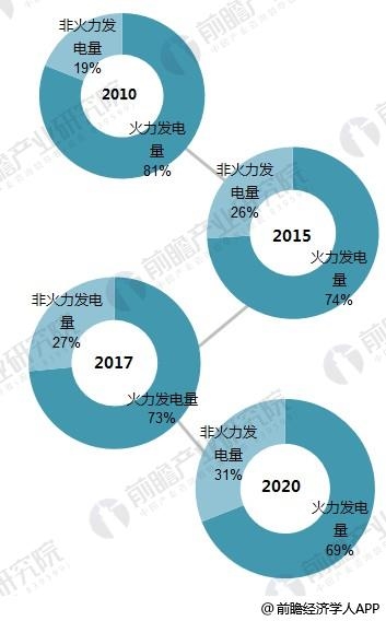 圖表2:2010-2020年中國火電與非火電發(fā)電量占比(單位:%)