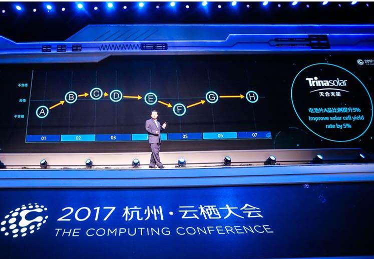 閔萬里介紹道,天合光能引入ET工業(yè)大腦后,對上億條生產(chǎn)數(shù)據(jù)進行實時分析,在上萬個生產(chǎn)參數(shù)中找到最佳生產(chǎn)模型。人工智能為光伏產(chǎn)線找到了更優(yōu)的生產(chǎn)工藝,提升電池片轉(zhuǎn)換效率。