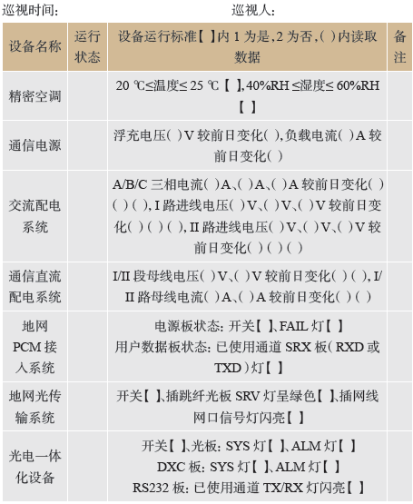 表4 機(jī)房設(shè)備巡視記錄Tab.4 The inspection record of information computer room
