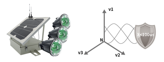 4.合成零序電流。利用同步算法實現(xiàn)三相電流、電場的數(shù)據(jù)同步采集,疊加合成零序電流波形。三相無線同步對時,精度達到100μs以下,三相相角誤差不大于1.8°。