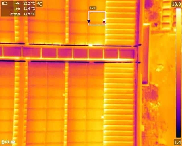 圖6:屋頂分布式電站項(xiàng)目部分區(qū)域的紅外圖片