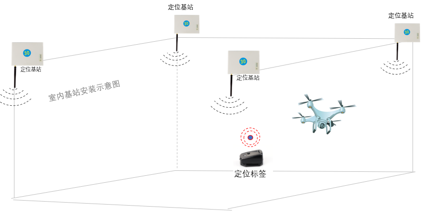 在需要定位的區(qū)域安裝一定數(shù)量的定位基站讓定位基站信號覆蓋需要定位的區(qū)域,無人機(jī)攜帶定位標(biāo)簽就可實(shí)現(xiàn)對目標(biāo)對象的分米級精確定位。