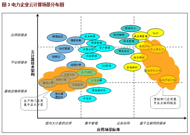 根據(jù)云計(jì)算的特點(diǎn),云計(jì)算在電力行業(yè)有四類應(yīng)用具有較為突出的應(yīng)用價(jià)值:第一類:支持動(dòng)態(tài)組織和業(yè)務(wù)協(xié)同的應(yīng)用,如根據(jù)業(yè)務(wù)發(fā)展增減新的業(yè)務(wù)部門,以及進(jìn)行業(yè)務(wù)的動(dòng)態(tài)調(diào)整。第二類:提供集中管理和集成共享的應(yīng)用,如在財(cái)務(wù)、人力、內(nèi)控等管控部門,進(jìn)行業(yè)務(wù)數(shù)據(jù)的決策分析和集中管理。第三類:基于網(wǎng)絡(luò)渠道和面向服務(wù)的應(yīng)用,如供電企業(yè)基于互聯(lián)網(wǎng)為電力用戶提供個(gè)性化、網(wǎng)絡(luò)化、隨身化的服務(wù)。第四類:需要高計(jì)算和高存儲(chǔ)能力的應(yīng)用,如生產(chǎn)運(yùn)營部門進(jìn)行海量的生產(chǎn)數(shù)據(jù)存儲(chǔ),以及進(jìn)行潮流計(jì)算、海量數(shù)據(jù)搜索等大數(shù)據(jù)量分析。