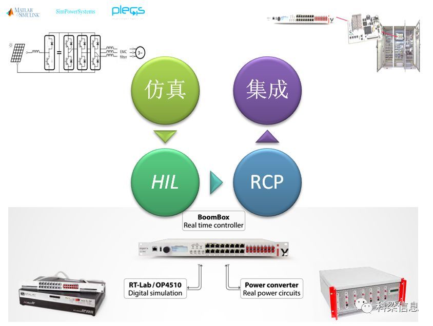 該平臺基于靈活配置的軟硬件平臺,測試驗證新的拓撲結(jié)構(gòu)和控制算法,無需修改控制代碼即可實現(xiàn)數(shù)字仿真-HIL-RCP的全部測試過程。數(shù)字仿真基于高精度、快應(yīng)用的eHS電力電子開發(fā)工具;數(shù)字仿真驗證過的控制下載到BoomBox控制器,與實時仿真器組成HIL驗證平臺;BoomBox控制器經(jīng)驗證后與Imperix功率硬件模塊再組成RCP測試平臺,BoomBox同時提供功率模塊獨立的軟件保護。
