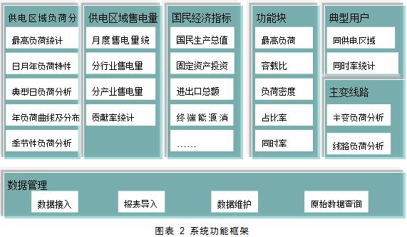 系統(tǒng)提供了6大業(yè)務(wù)分析功能及1個數(shù)據(jù)接入與管理模塊,共約100多個分析子功能項,覆蓋了309號文對負荷預測分析的深度要求規(guī)定的內(nèi)容,滿足各級負荷分析預測人員的日常工作所要,系統(tǒng)主要包括以下應(yīng)用功能模塊: