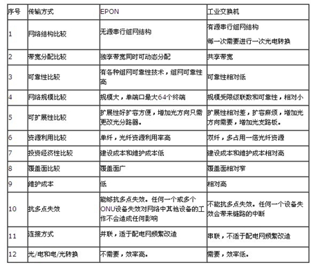 以下就EPON和工業(yè)以太網(wǎng)技術(shù)進行這兩種主流光纖通信方式進行比較。