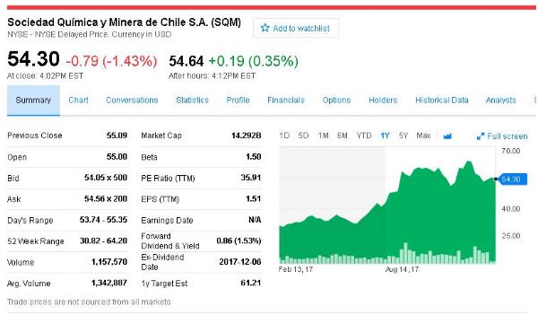 根據(jù)對沖基金向美國監(jiān)管機構披露的文件,截至2017年12月31日,文藝復興科技持有120萬美元SQM的美國存托憑證(ADR),而3個月之前,其持有量還只有90.13萬美元。