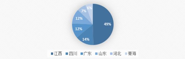 氫氧化鋰方面,共有6家企業(yè)在2018年規(guī)劃新增產(chǎn)能合計(jì)7.8萬噸,分地區(qū)份額如下圖所示。與碳酸鋰不同,擬投建新產(chǎn)能的主要廠家以傳統(tǒng)鋰鹽廠商為主,僅有1家行業(yè)新進(jìn)入者——四川能投鼎盛鋰業(yè)有限公司。