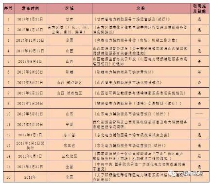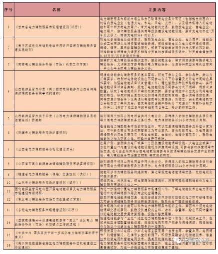 表1:電力市場(chǎng)輔助服務(wù)相關(guān)政策一覽表