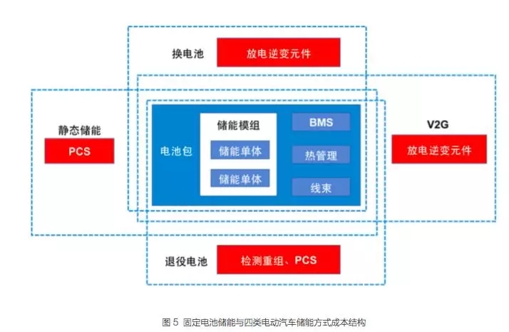 除車輛行駛所需電能外,V2G可將動(dòng)力電池剩余電能反送電網(wǎng),從而實(shí)現(xiàn)與固定電池相似的儲(chǔ)能作用。但與有序充電不同,電動(dòng)汽車V2G涉及車載充放電機(jī)或新型電機(jī)控制器的硬件升級(jí),因而會(huì)帶來較為明顯的新增投資。與固定電池儲(chǔ)能系統(tǒng)類似,儲(chǔ)能單元(動(dòng)力電池)成本是V2G經(jīng)濟(jì)性的重要影響因素。