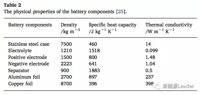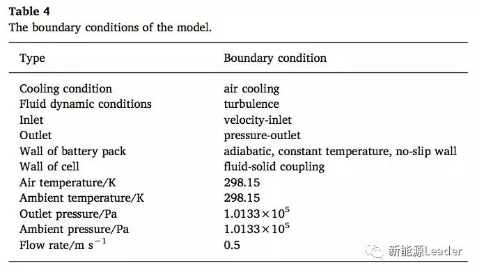 Quan Xia采用了A123的LiFePO4電池對上述模型進(jìn)行了驗證,電池組采用了3并5串的結(jié)構(gòu),電池組的一些熱特性參數(shù)如下表2所示,模型的參數(shù)如下表3所示,模型的邊界條件如下表4所示。