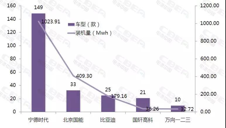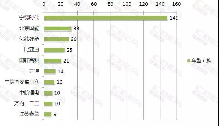 裝機(jī)量代表動力電池企業(yè)在當(dāng)前市場的占有量,若要看未來動力電池企業(yè)發(fā)展如何?就要看動力電池企業(yè)配套車型獲批情況,未來哪家動力電池企業(yè)配套車型越多,未來將有機(jī)會獲得更多的市場占有量。下面來看2018年新能源汽車推薦目錄1-3批車型配套電池企業(yè)前10名。寧德時代以149款配套車型遙遙領(lǐng)先;位居第2位的是國能,配套車型量為33款;億緯鋰能緊隨其后,配套車型量為30款;從第4名開始,配套車型均低于30款并逐漸下滑,趨勢平緩。