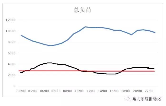 例如:某用戶并入電網(wǎng)的負(fù)荷特性曲線為(藍(lán)線),微電網(wǎng)一體化運(yùn)營(yíng)主體可申報(bào)與并入電網(wǎng)峰谷反向的容量曲線(黑線)。同時(shí),一體化運(yùn)營(yíng)主體申報(bào)容量曲線為一條直線(紅線)也存在技術(shù)可行性。