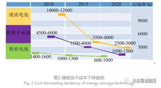 預計到2020年,目前國內(nèi)安裝量較大的磷酸鐵鋰電池的成本價有望降到人民幣1000元/(kW•h)左右。而隨著各類驗證、示范應用以及標準的建立,儲能技術的安全性也將逐步提升,達到標準要求。鉛酸電池也在不斷改進技術,多家企業(yè)已經(jīng)開始從事鉛碳電池的開發(fā),重點提升鉛酸電池的使用壽命。液流電池相關制造企業(yè)少,目前液流電池儲能系統(tǒng)的整體轉(zhuǎn)換效率約70%,尚無法與磷酸鐵鋰和先進鉛酸電池相比,但在使用壽命方面有明顯優(yōu)勢。