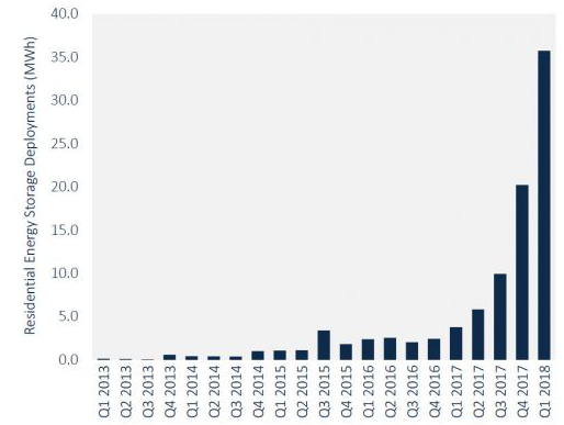 •2018年第一季度部署了35.8兆瓦時(shí)的住宅儲(chǔ)能系統(tǒng)。