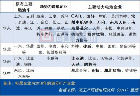 動力電池作為汽車的核心部件,以圍繞車企建廠為核心的趨勢明顯。華南地區(qū)3C電子、數(shù)碼家電等發(fā)達,但汽車產(chǎn)業(yè)發(fā)達程度低于華東等地區(qū)。從新勢力造車企業(yè)的產(chǎn)能布局來看,也集中分布在華東地區(qū),因此動力電池擴產(chǎn)仍以華東、華北等地區(qū)為主。
