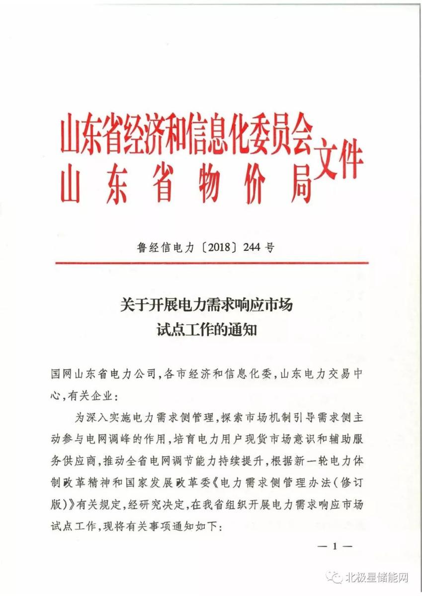 近日,山東經(jīng)信委聯(lián)合山東物價局制定印發(fā)了《關(guān)于開展電力需求響應(yīng)市場試點(diǎn)工作的通知》(魯經(jīng)信電力〔2018〕244號),將通過經(jīng)濟(jì)激勵政策,采用負(fù)荷管控措施,調(diào)節(jié)電網(wǎng)峰谷負(fù)荷,削峰填谷緩解供需矛盾。交易需申報響應(yīng)量和補(bǔ)償價格,其中補(bǔ)償價格為每響應(yīng) 1 千瓦負(fù)荷需要的補(bǔ)償費(fèi)用,最高暫定不超過30元。儲能設(shè)施和非工業(yè)用戶中央空調(diào)應(yīng)具備單獨(dú)控制條件。