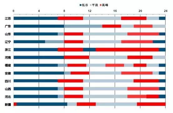 部分省市2016年工業(yè)用電平均峰谷電價及價差