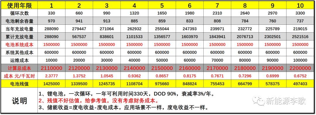 可見:系統(tǒng)總成本低的,度電成本不一定低,梯次利用價值幾何?很關(guān)鍵的一個參數(shù) ---循環(huán)次數(shù)。一直以來,循環(huán)次數(shù)是個謎,因為還沒多少投運時間夠長的儲能電站可供參考數(shù)據(jù)。