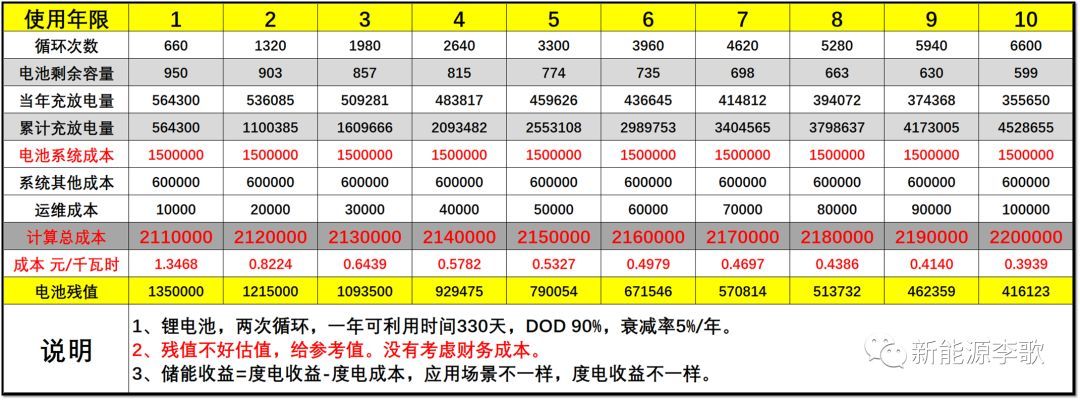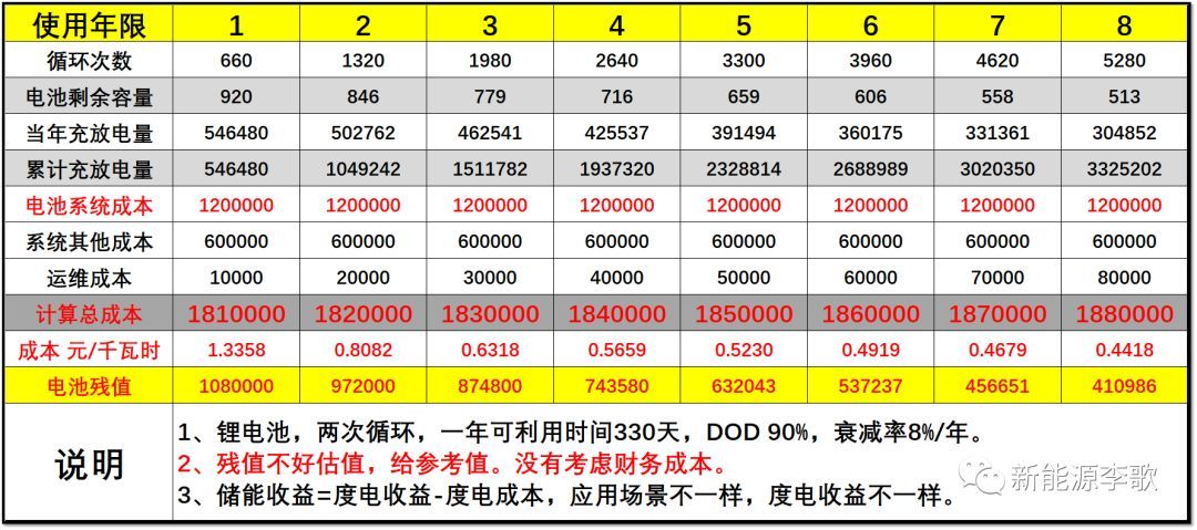 1.2.1 鋰電池度電成本1(一天兩次循環(huán)):