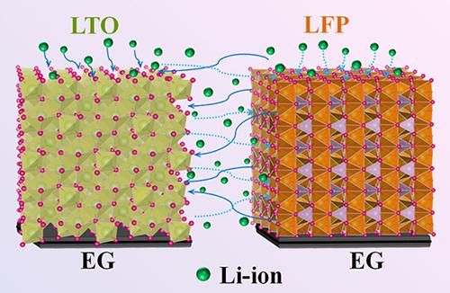 最近,該研究團(tuán)隊(duì)率先開(kāi)發(fā)出一種全固態(tài)平面集成化的鋰離子微型電池。該鋰離子微型電池以納米鈦酸鋰納米球?yàn)樨?fù)極,磷酸鐵鋰微米球?yàn)檎龢O,高導(dǎo)電石墨烯為非金屬集流體,離子凝膠為電解液,具有平面十指交叉構(gòu)型且無(wú)需使用傳統(tǒng)隔膜和金屬集流體。獲得的鋰離子微型電池具有多方向傳質(zhì)的優(yōu)勢(shì),表現(xiàn)出高體積能量密度125.5mWh/cm3,優(yōu)異的倍率性能;超長(zhǎng)的循環(huán)穩(wěn)定性,3300次循環(huán)后容量基本沒(méi)有衰減;以及良好的機(jī)械柔性,在反復(fù)彎曲或扭曲下其電極結(jié)構(gòu)無(wú)損壞以及電化學(xué)性能無(wú)明顯變化。同時(shí),該微型儲(chǔ)能器件能在100°C的高溫環(huán)境下穩(wěn)定工作且具有長(zhǎng)循環(huán)穩(wěn)定性(1000次循環(huán))。此外,該鋰離子電池?zé)o需金屬連接體便能實(shí)現(xiàn)模塊化自集成,實(shí)現(xiàn)輸出電壓和容量的有效調(diào)控。因此,該鋰離子微型電池在柔性化、微型化電子器件的應(yīng)用中具有很大潛力。