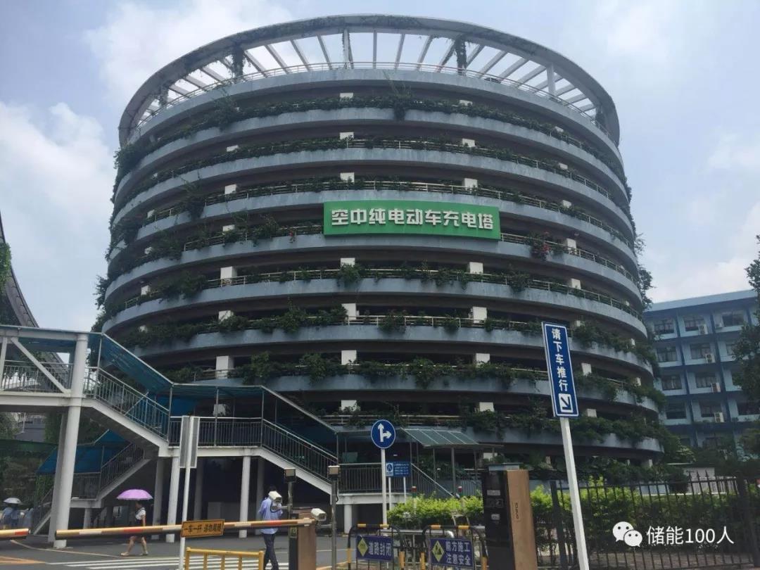 比亞迪空中充電塔,可同時容納400輛電動車充電。
