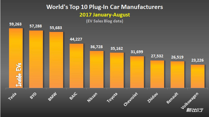 全球新能源汽車銷量前十點評 三個自主品牌上榜