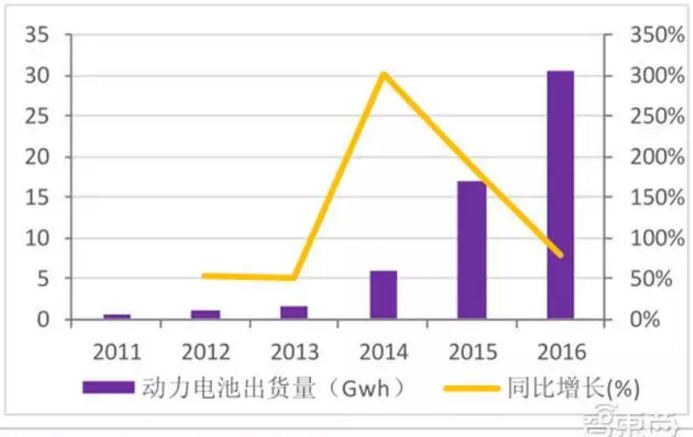受全球新能源汽車浪潮來臨,動力電池空間巨大。根據(jù)研究機構(gòu)EVTank統(tǒng)計數(shù)據(jù)顯示,2016年中國國內(nèi)動力鋰電池企業(yè)出貨量合計達到30.5GWh,同比2015年的17.0GWh大幅度增長79.4%,2013-2016年動力電池出貨量復(fù)合增長率高達172.94%。