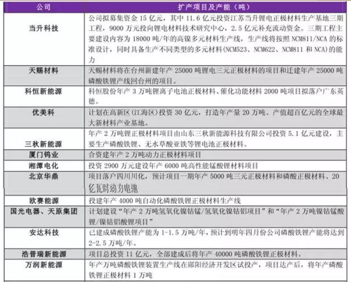 2017年正極材料企業(yè)紛紛進行產(chǎn)能擴張