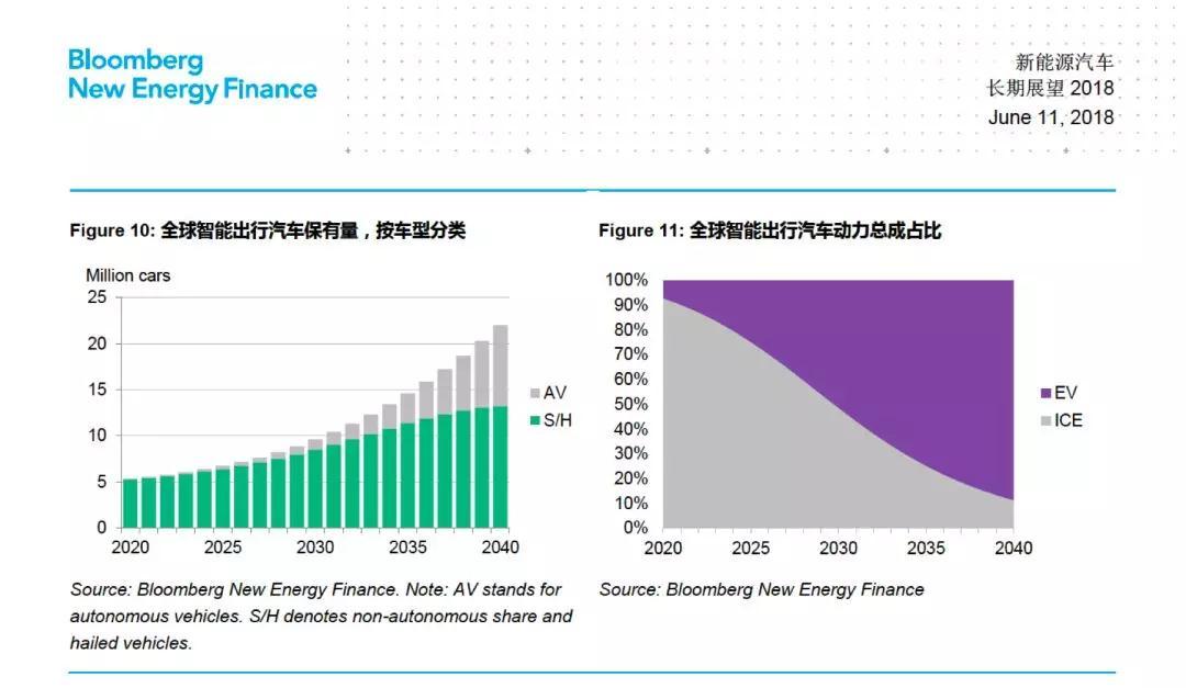 共享出行也會(huì)影響新能源汽車的未來(lái)銷量。全球共享出行用車將從現(xiàn)在的500萬(wàn)輛增加至2040年的2000萬(wàn)輛。到那時(shí),90%的共享出行汽車將是新能源汽車,因其運(yùn)營(yíng)成本更低。40%的共享出行汽車將具備高度自動(dòng)駕駛功能。