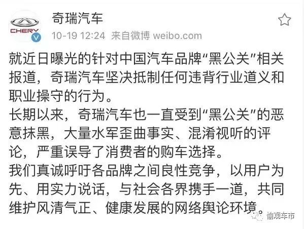 之后,更為奇葩的是,不怕事大的奇瑞主動前來“湊熱鬧”,同樣將矛頭指向吉利,大有落井下石之意。