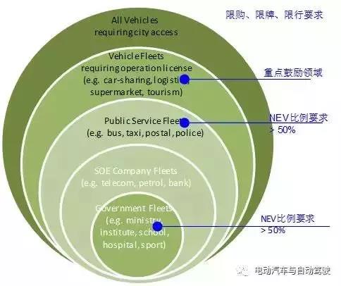 國(guó)家新能源汽車(NEV)推廣計(jì)劃里各領(lǐng)域NEV比例目標(biāo)