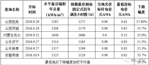 領(lǐng)跑者競(jìng)爭(zhēng)更加激烈,最低的中標(biāo)電價(jià)下降幅度大,在15.3%~37.8%之間;