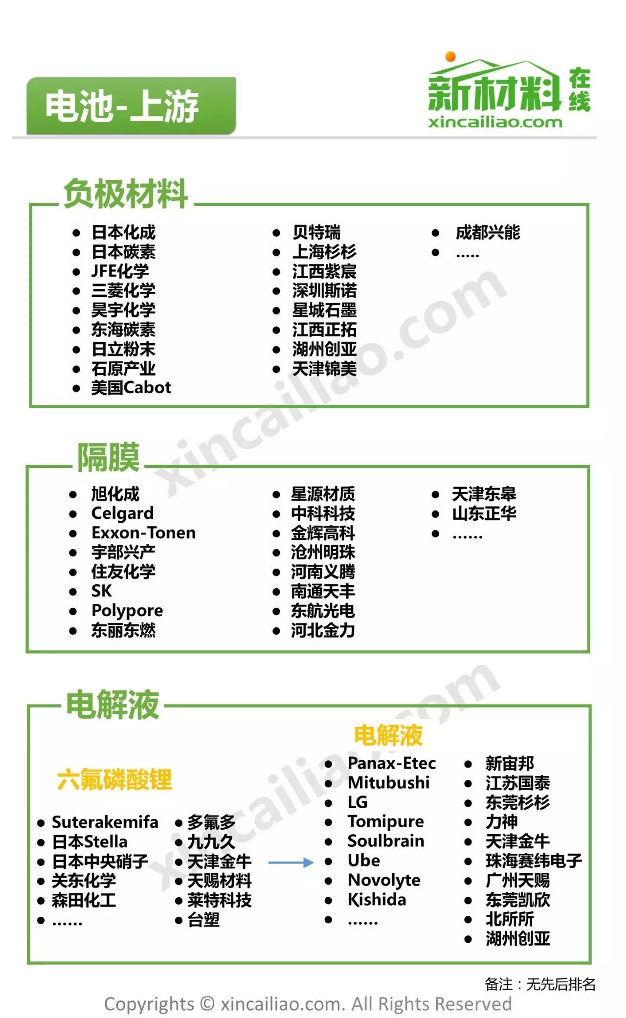 一圖說的形式展現(xiàn)了新能源汽車產(chǎn)業(yè)鏈的全景圖,主要包括動力電池正極材料、負極材料以及電芯與pack廠商等。
