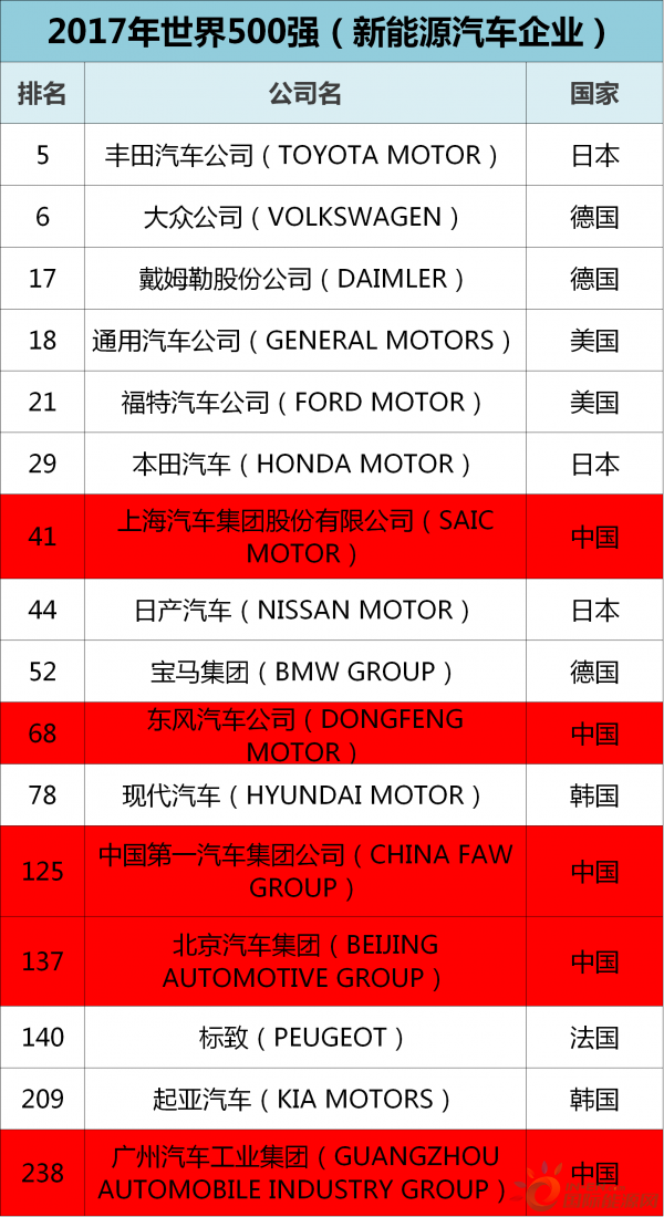 前不久,財(cái)富中文網(wǎng)發(fā)布了世界和中國500強(qiáng)企業(yè)排行榜,在世界500強(qiáng)中,新能源車企占到16家,其中有5家為中國車企,分別是:上海汽車集團(tuán)股份有限公司、東風(fēng)汽車公司、中國第一汽車集團(tuán)公司、北京汽車集團(tuán)和廣州汽