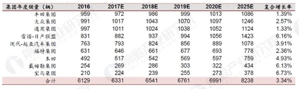 十大汽車集團(tuán)2016年汽車總銷量6129萬輛,而2016年新能源汽車銷量為30.7萬輛,總體新能源汽車滲透率僅為0.6%,相對于2025年15-25%的目標(biāo)有巨大增長空間。即便按照去年總銷量計(jì)算,到2025年新能源汽車空間高達(dá)900-1500萬輛,無疑將成為十大汽車集團(tuán)的未來核心增量。