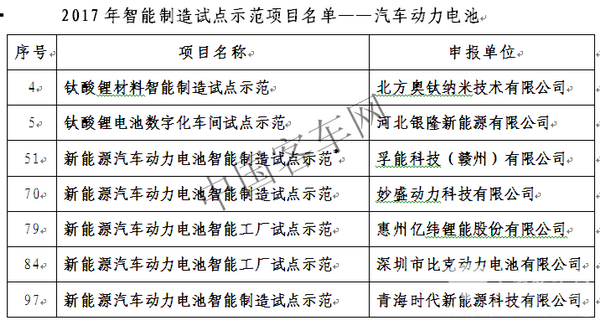 “2017年智能制造試點示范項目”18個汽車關聯(lián)項目中,新能源汽車動力電池就占了7個。