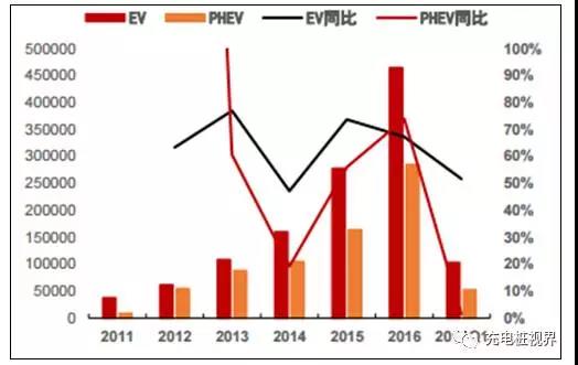 2014 年以前新能源汽車 市場以美歐日為主體,而隨著 2014 年以后中國政府開始大力推廣新能源汽車,中國新能源汽車全球市場份額從 2013 年的 6%迅速增長至 2016 年的 45%。16 年新能源乘用 車銷量達到 33.7 萬輛,遠超美國的 15.8 萬輛,中國連續(xù)維持新能源汽車產(chǎn)銷第一。中國新能源汽車市場從 2014 年開始保持高速增長,14-15 年化增速 200%以上,16 年受 騙補和新政持續(xù)滯后等因素影響,銷量不達預期,但依然保持了 63%的高增速。17 年 Q1 由于受補貼新政、目錄重審、產(chǎn)業(yè)預期調(diào)整等影響增速有所下滑,但隨著 17 年 2-3 月份銷量增速回升(同比 70%以上),市場信心開始逐步回暖。