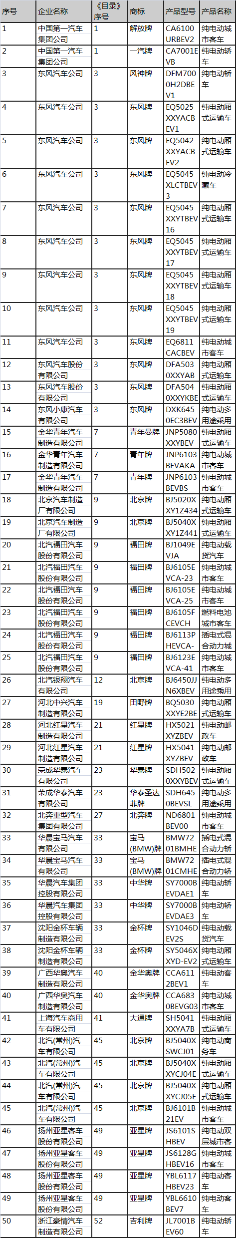 新能源汽車推廣應(yīng)用推薦車型目錄(2017年第9批)