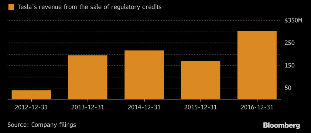 過去五年,盡管競爭對手怨聲載道,特斯拉已經(jīng)通過出售“指標”獲益將近10億美元。僅僅去年一年時間,單出售“指標”就為特斯拉帶來了超過3億美元的不菲收益。