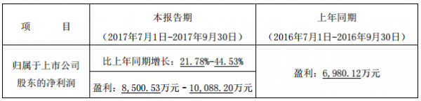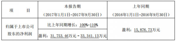 2017年前三季度預計業(yè)績情況: