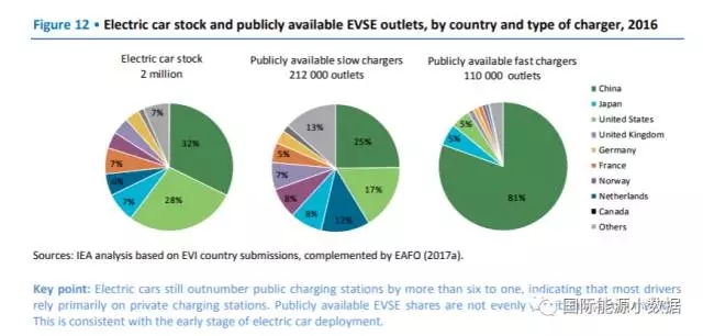 根據(jù)國(guó)際能源署(IEA)近期發(fā)布的2017年全球電動(dòng)汽車展望報(bào)告中的數(shù)據(jù),2016年底全球電動(dòng)汽車總數(shù)達(dá)到200萬(wàn)輛,其中中國(guó)占32%、美國(guó)28%。同期全球共有21 2萬(wàn)向公眾開放的慢速充電接口,其中中國(guó)占25%、美國(guó)17%;11萬(wàn)