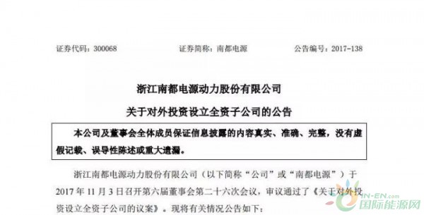 南都電源11月7日發(fā)布公告稱,擬使用自有資金10,000萬元設(shè)立全資子公司安徽南都華鉑新材料科技有限公司(以下簡(jiǎn)稱南都華鉑新材料),開展鋰電回收及新材料業(yè)務(wù),打通鋰電產(chǎn)業(yè)鏈。  公告顯示,南都華鉑新材料