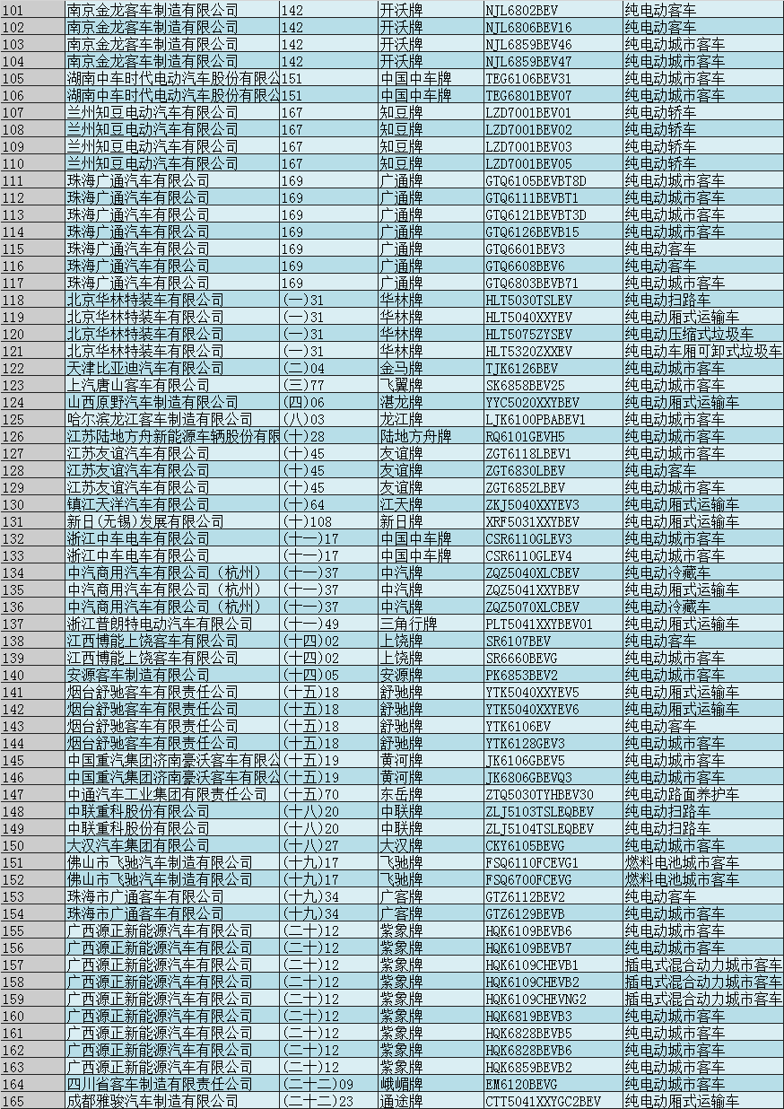 12月4日,工信部發(fā)布《新能源汽車推廣應(yīng)用推薦車型目錄(2017年第11批)》,共包括79戶企業(yè)的165個(gè)車型。其中純電動產(chǎn)品共77戶企業(yè)152個(gè)型號、插電式混合動力產(chǎn)品共4戶企業(yè)7個(gè)型號、燃料電池產(chǎn)品共4戶企業(yè)6個(gè)型號。